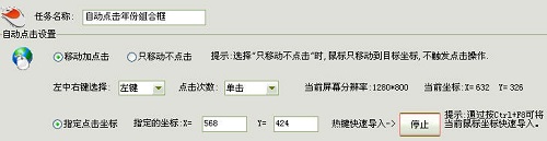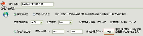 手机一项,我们这里也采用随机号码输入的方法。先添加一个“自动点击”任务,定位到手机输入框的坐标,如下图所示: