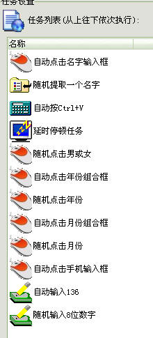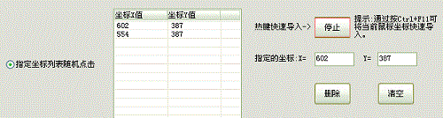 性别一项,是要选择是“男”或者“女”,我们可通过“自动点击”任务里的“指定坐标列表随机点击”实现随机选择,依次导入“男”和“女”这两个选择框的坐标,如下图所示: