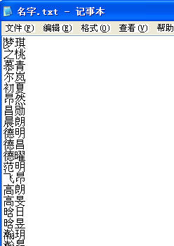 名字一项,我们这里有现成的文件,里面存放的是很多常见名字,如下图所示: