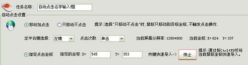 先添加一个“自动点击”任务,点击“名字”编辑框,使输入光标处于该位置。如下图所示: