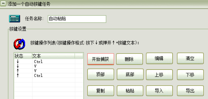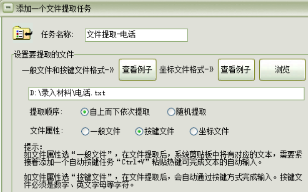 后面要加一个自动按键任务,捕获Ctrl+V粘贴热键。而如是手机号那种纯数字的,可以选“按键文件”选项,就不用在后面加Ctrl+V。