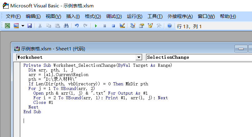 这段宏代码的作用是可以自动将Excel每一列生成到TXT文本文件,以便后续在我们阿冲全能点击王里调用。
