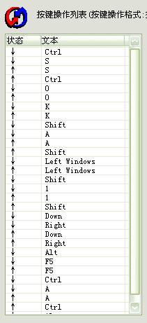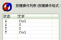 1-按键操作列表为当前要执行的按键序列,第一列为按键的状态,是按下↓或者弹开↑,第二列为按键的文本名称。如下为按Ctrl+S时的按键序列。