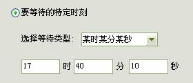 当选择“要等待的特定时刻”,则是表示当下面时刻到来时,再执行后续的任务。可以选择对应的等待类型:某时某分某秒、某时某分或某时。比如,想等下午5点40分10秒到来时,可以如下设置: