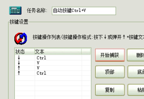 2-通过点“开始捕获”按钮,会启动按键捕获程序,可以自动录入想要的按键,并即时显示到按键操作列表中。当已输入要执行的按键后,点“停止捕获”即可。